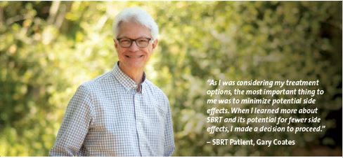Radiation oncologist Justin Voog, MD, PhD and our highly-trained radiation therapy team now offer an advance treatment for prostate cancer called  stereotactic body radiation therapy (SBRT). The innovative technique use Ridley-Tree’s world-class linear accelerators to safely and effectively deliver powerful doses of radiation to the exact location of the tumor, targeting cancer cells while minimizing effects on surrounding tissues. “This minimally-invasiveoutpatient procedure addresses the tumor from multiple angles and allows the physician to adjust for tumor movementin near-real time,” explains Dr. Voog. The 30-minute procedure only requires five sessions instead of eight weeks ofconventional radiation therapy, resulting in faster recovery times. All SBRT patients receive Space OAR injectable hydrogel prior to treatment to create space between the rectum and the prostate, preventing some of the negative side effects that could result from the radiation. The team incorporates a CT simulation scan as well as image-guided radiotherapy to achieve a high-level of precision during the treatment. The American Society for Radiation Oncology (ASTRO), the organization that accredited Ridley-Tree’s Radiation Therapy Department, lists SBRT as the standard of care for low- and intermediate-risk prostate cancer